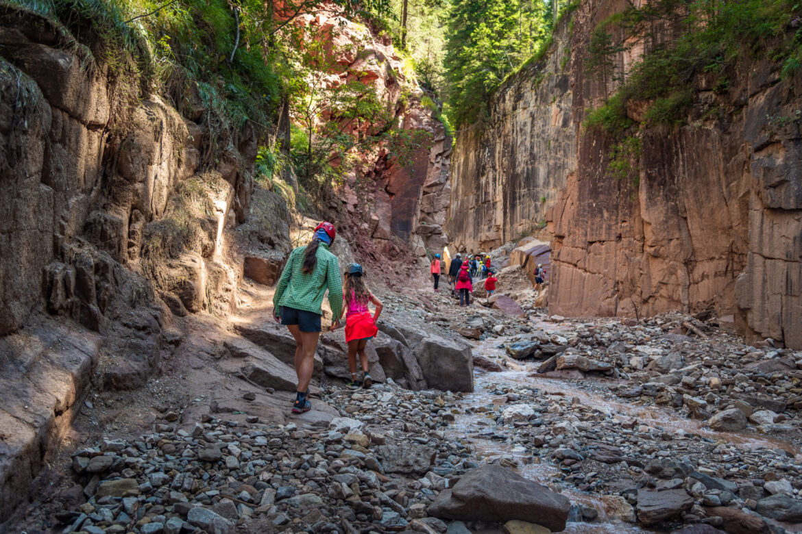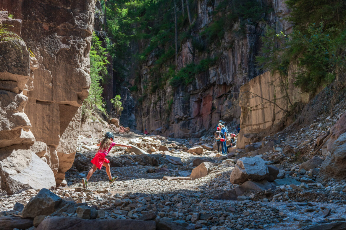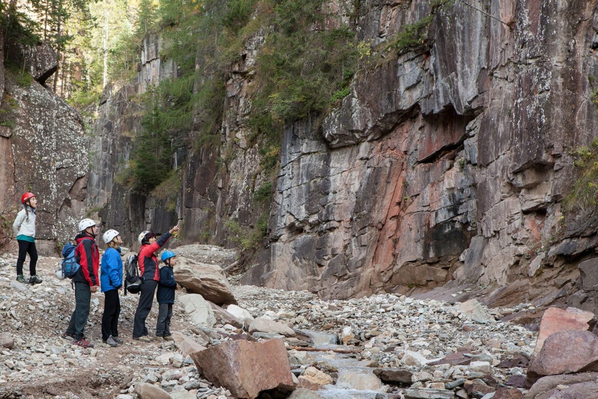 From May to October, we offer guided adventure tours through the Rio delle Foglie daily at 10:30 a.m. – approximately 3.5 hours of learning, exploration, and moments of wonder. Themed hikes such as “Bletterbach for Kids” or personalized GEO excursions are also available.